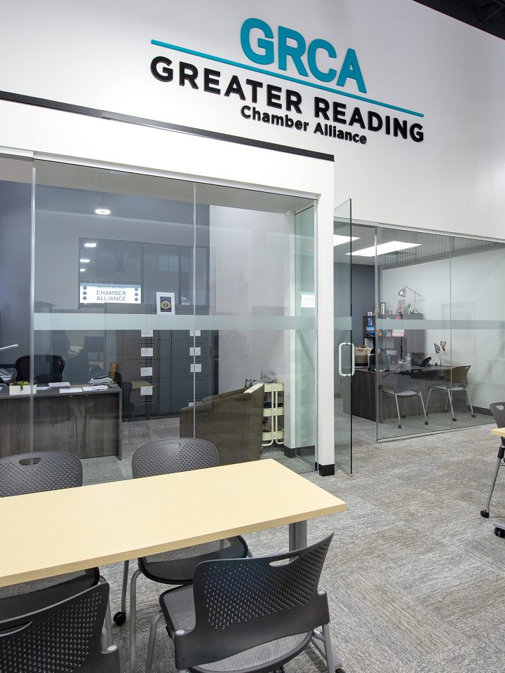 This fast-paced renovation saw the transformation of an existing tenant space into a unique, modern office for the Greater Reading Chamber Alliance (GRCA). The GRCA wanted to consolidate their employees and resources into one space.