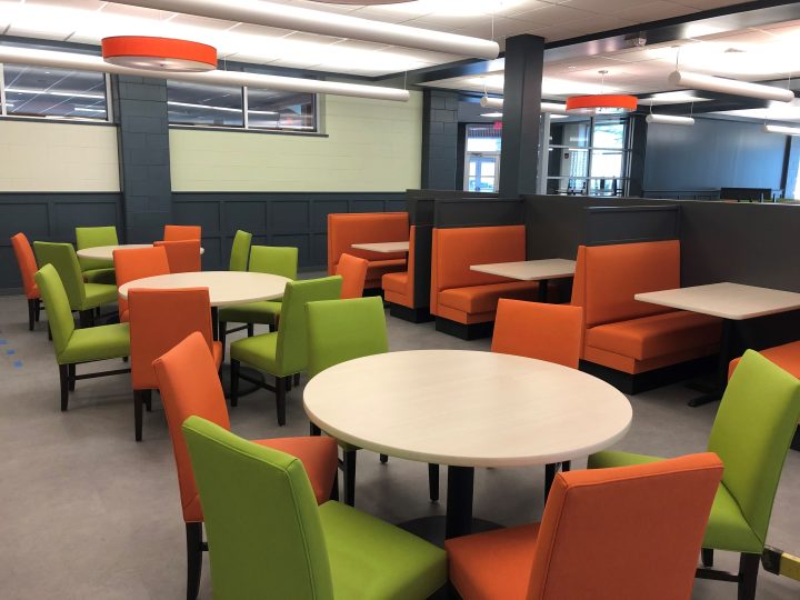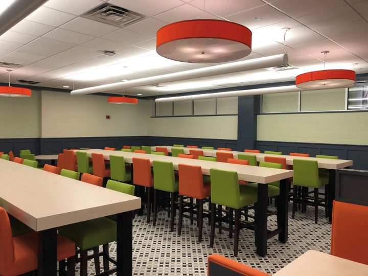 Alvernia's existing student dining space was in need of updates to improve both the aesthetic and functionality of the space to support its growing student body. While cosmetic touch-ups such as new furniture, fixture woork, and floor and wall finishes gave the space a more modernized, elevated look, updated MEP systems and expanded food prep stations provided the needed upgrade to give students a better dining experience and support Alvernia's staff.