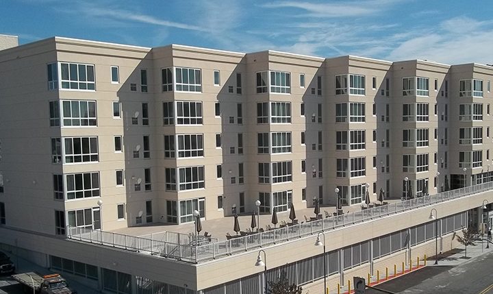 This 59-unit apartment building was constructed with the Tradereay joist system and prefabricated metal stud framed wall panels. The structure rests over a conventional steel-framed, ground-level parking garage with a lower-level entrance lobby.