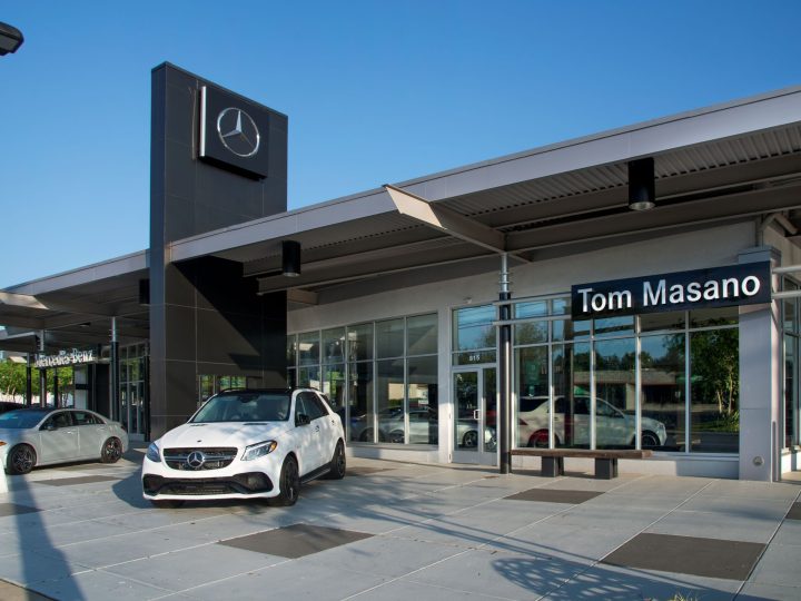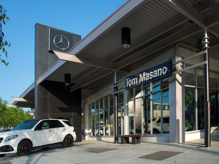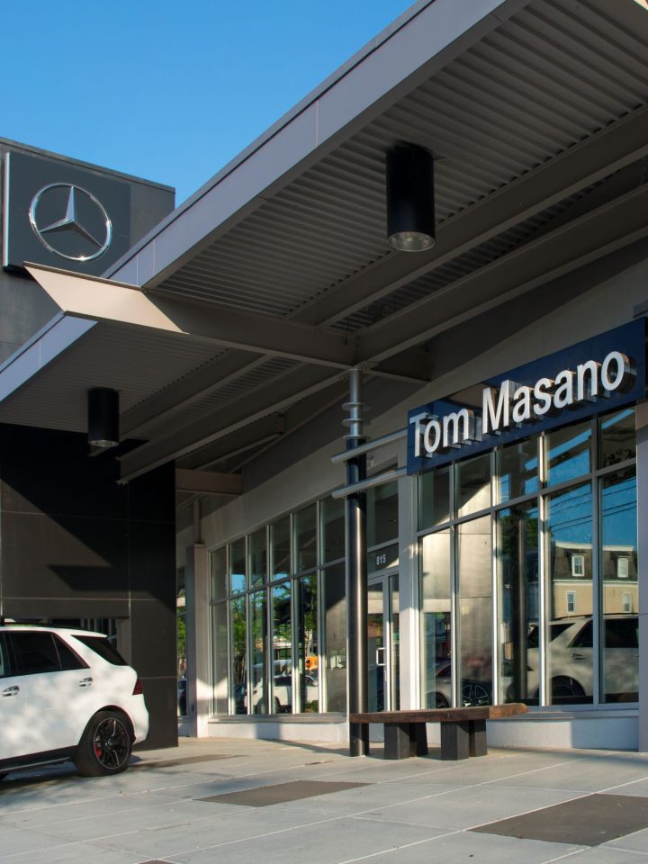 The overall aura of the new Masano Mercedes Benz building is refined, sleek, and modern.