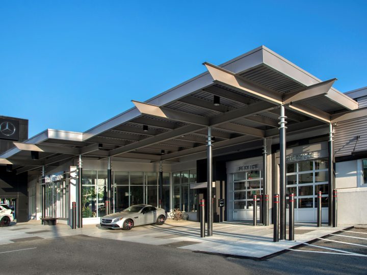 This stunning renovation was a complete transformation of the existing showroom and service area to include all new windows, floors, paint, ceilings, and bathroom upgrades. Mercedes Benz required appropriate updates to the building to comply with their Corporate Identity Guidelines, including an expanded showroom, indoor service write-up, and an indoor new car delivery area.